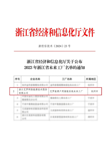 2024:“ag亚娱能源户用储能系统”上榜浙江省未来工厂